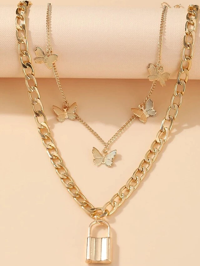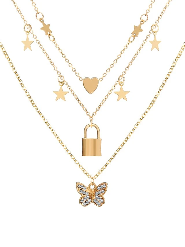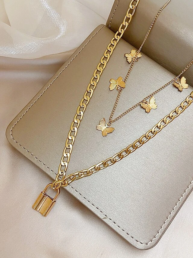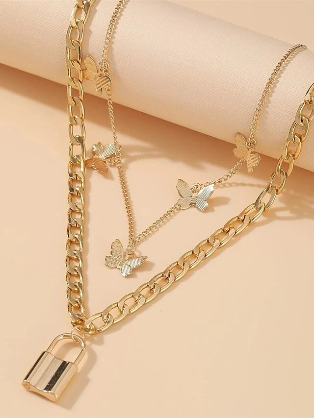 Pendant Necklace Layered Necklace For Women’s Christmas Party Evening Gift Alloy Retro Butterfly
