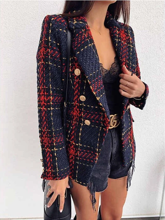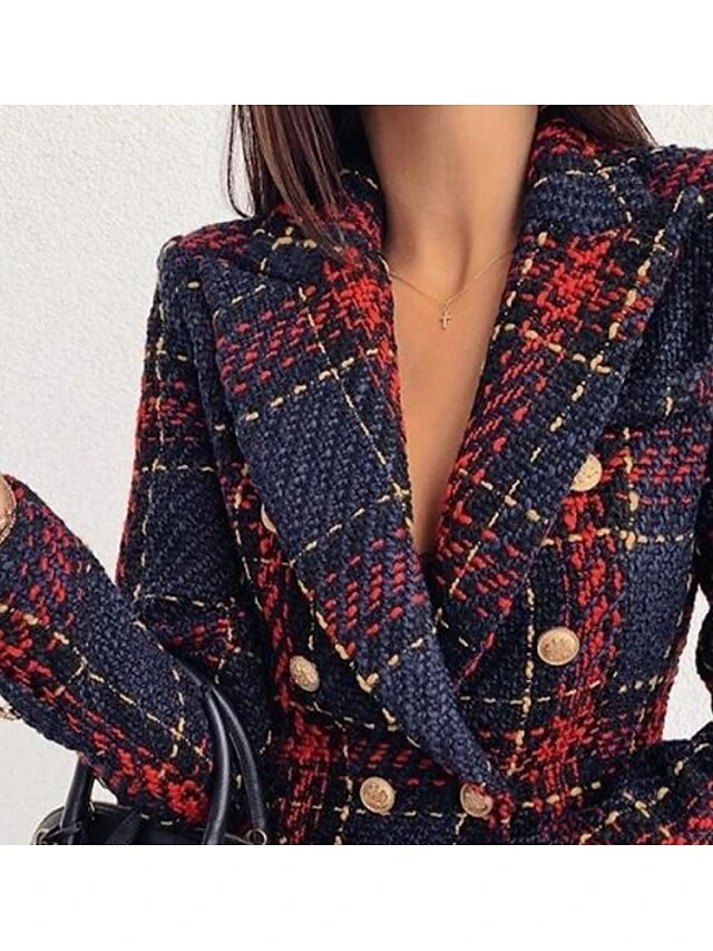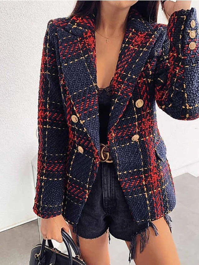 Women’s Blazer Comfortable Outdoor Christmas Vacation Casual Daily Button Print Double Breasted Turndown Stylish Lady Modern Comfortable Solid Color Regular Fit Outerwear Long Sleeve Fall Winter Dark