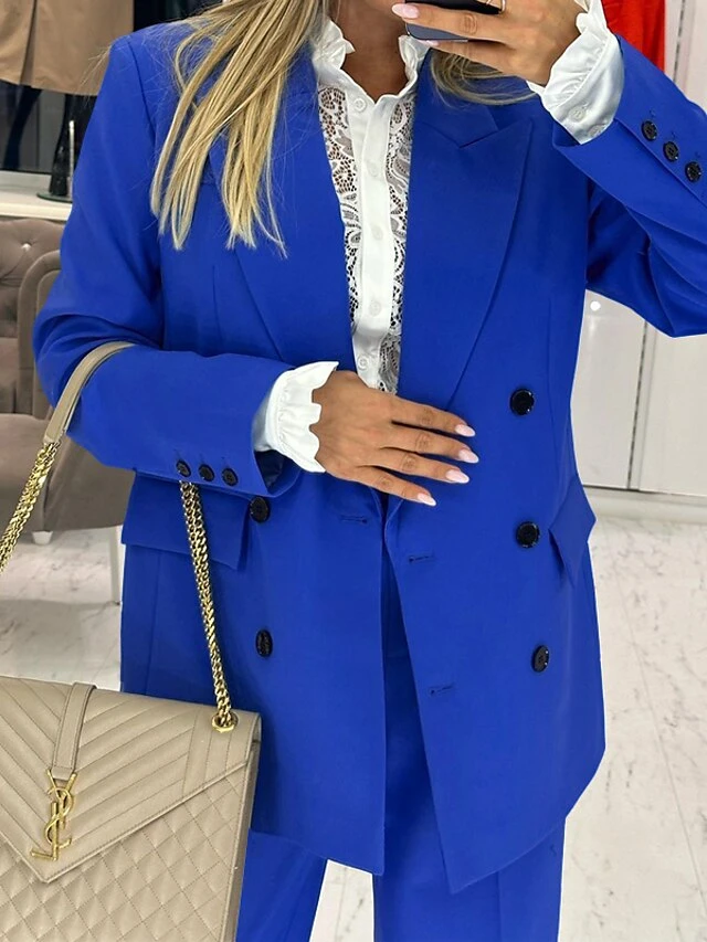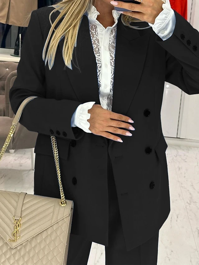 Women’s Blazer Suits Fall 2 Pcs Blazer & Pants Double Breasted Lapel Blazer Party Christmas Outfit Office Xmas Casual Stylish Jacket Long Sleeve Fall Black Red Outerwear