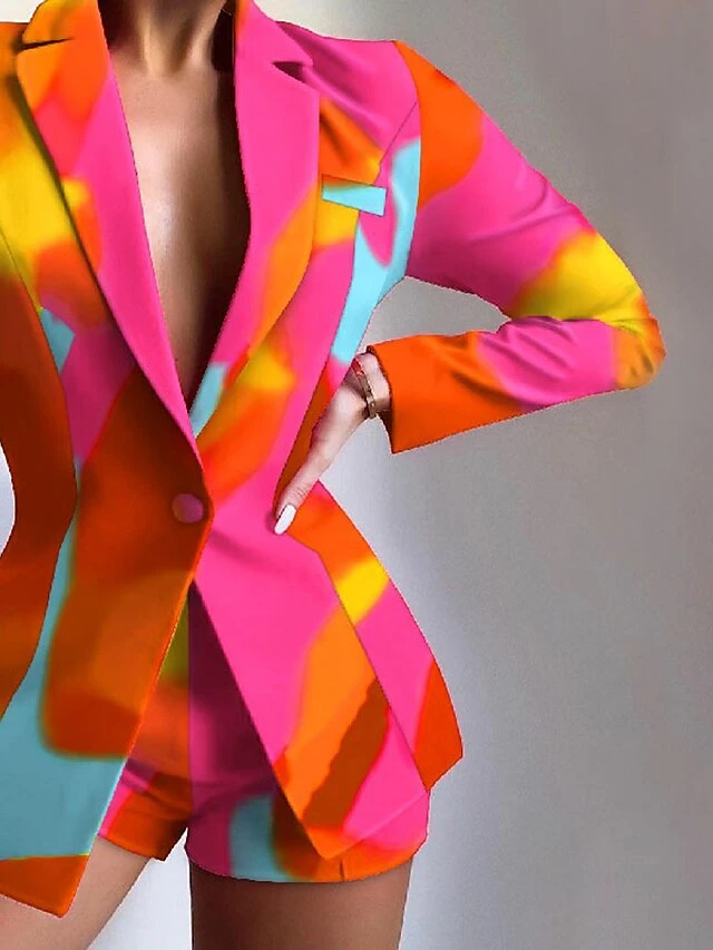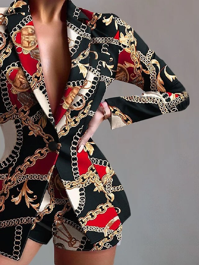 Women’s Blazer Suits Fall 2 Pcs Leopard Blazer & Short Pant Christmas Party Wear Fashion Slim Fit Outerwear Long Sleeve Fall