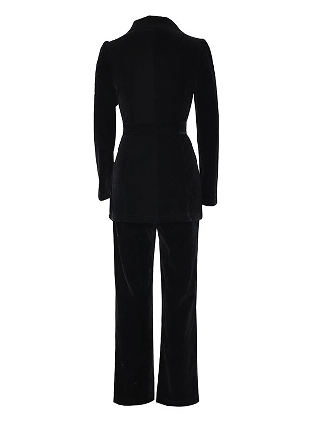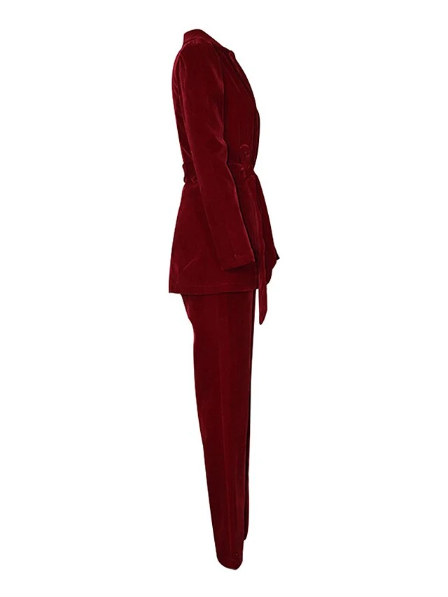 Women’s Blazer Suits Velvet Christmas 2 Piece Blazer & Pants Party Wear Office Work Xmas Casual Jakcet Single Breasted Coat With Belt Fashion Street Wear
