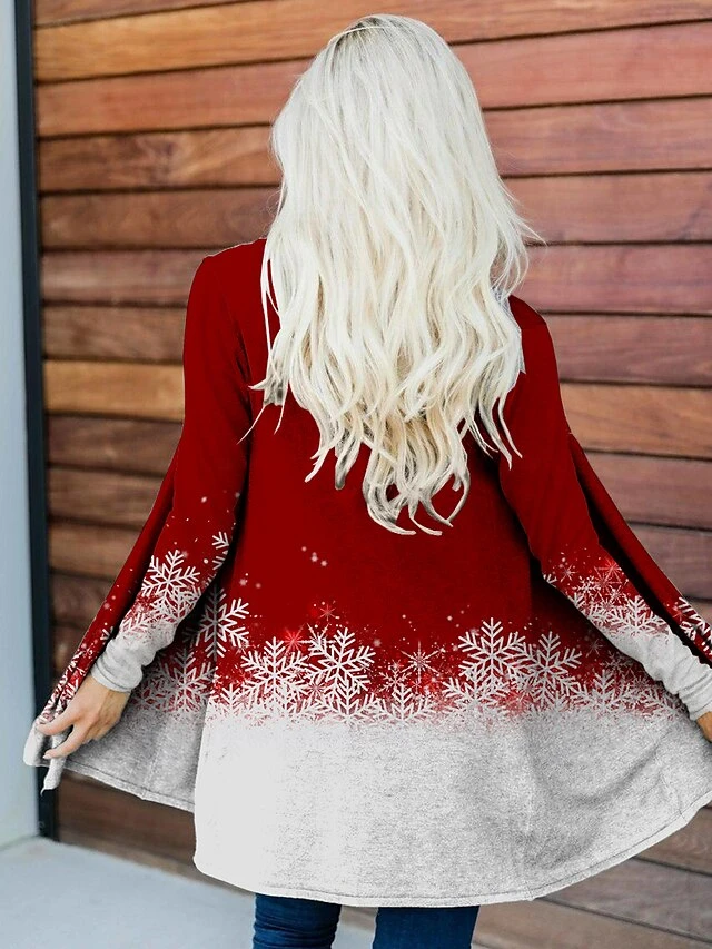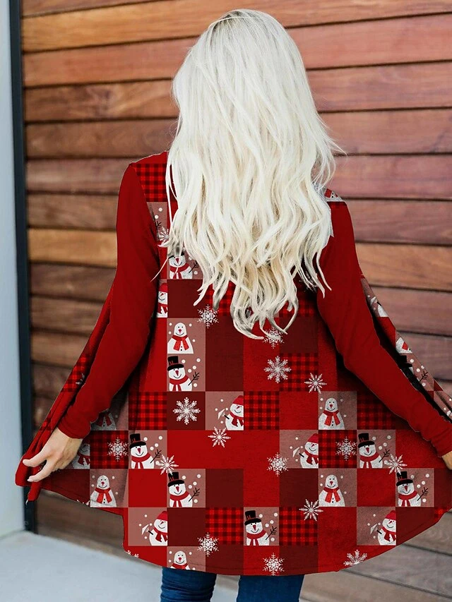 Women’s Casual Jacket Christmas Print Xmas Snowman Fashion Loose Fit Outerwear Long Sleeve Big Red S