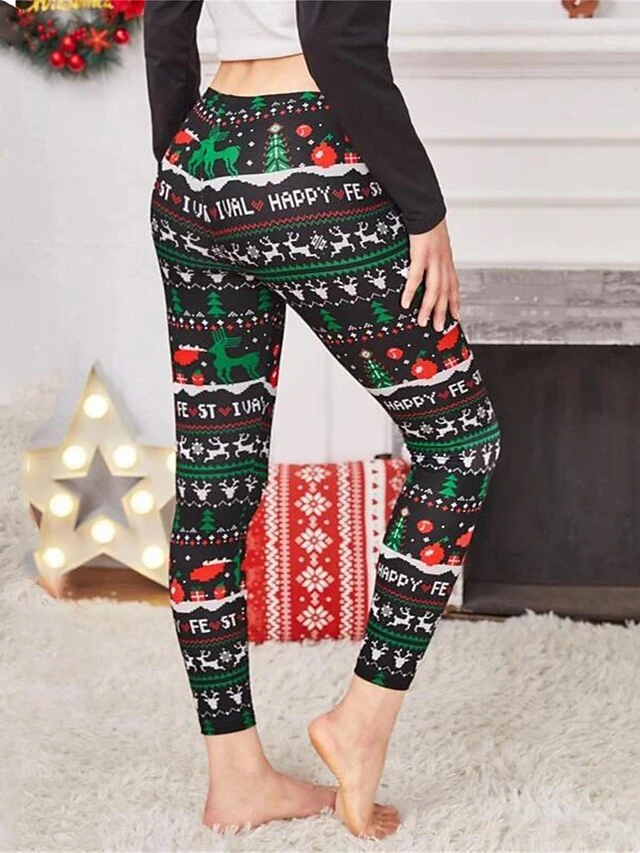 Women’s Christmas Leggings Christmas Tree Reindeer Full Length Active Vacation Daily Depression Green Pink S M Fall Winter