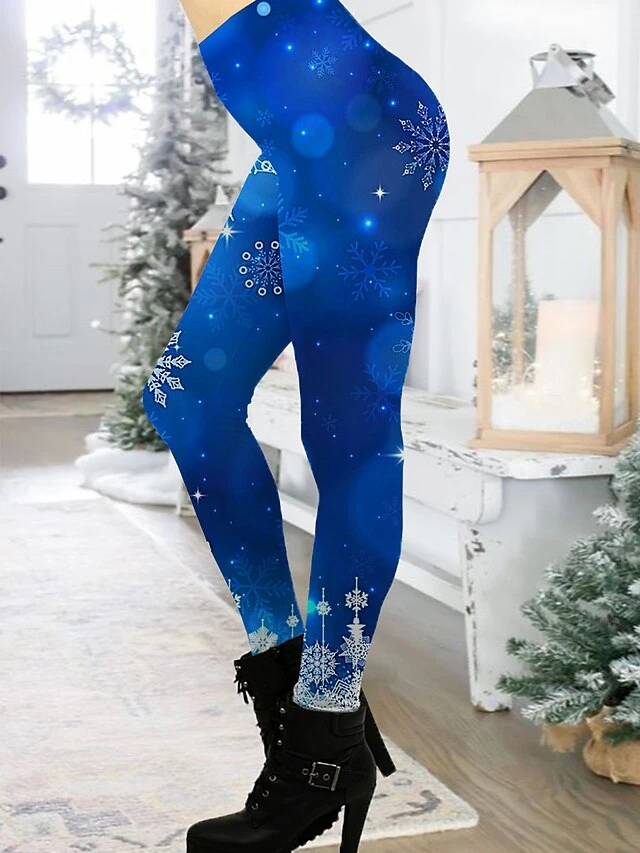 Women’s Christmas Leggings Full Length Active Fashion Christmas Daily Navy Blue Royal Blue S XL Fall & Winter