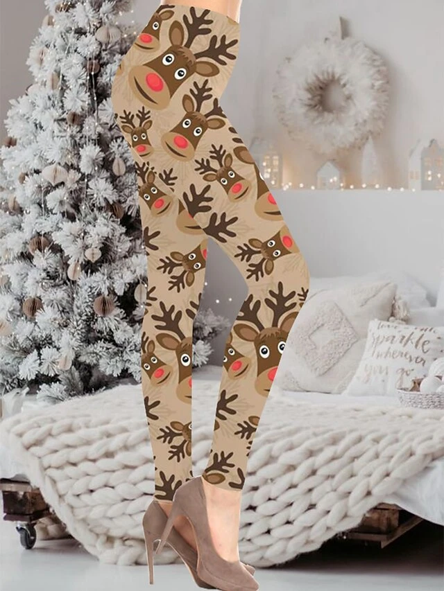 Women’s Christmas Leggings Full Length Active Fashion Christmas Daily White Green S XL Fall & Winter