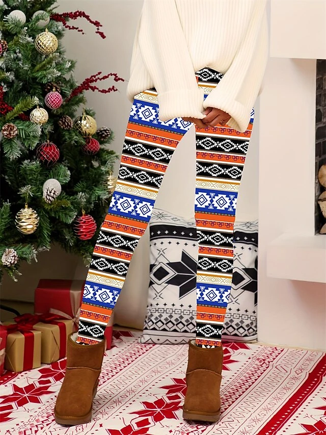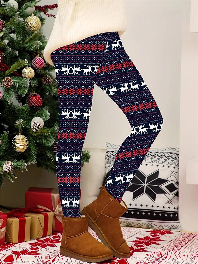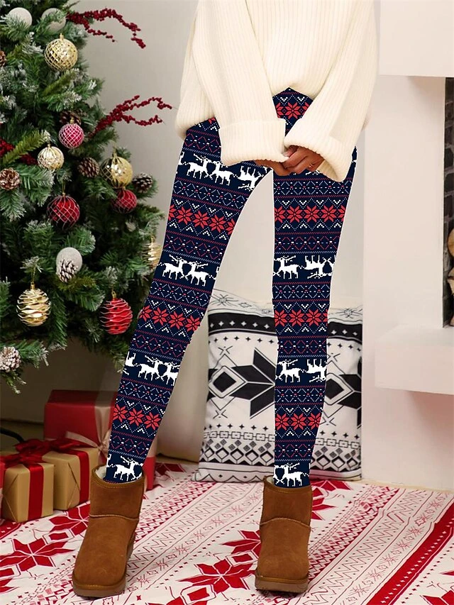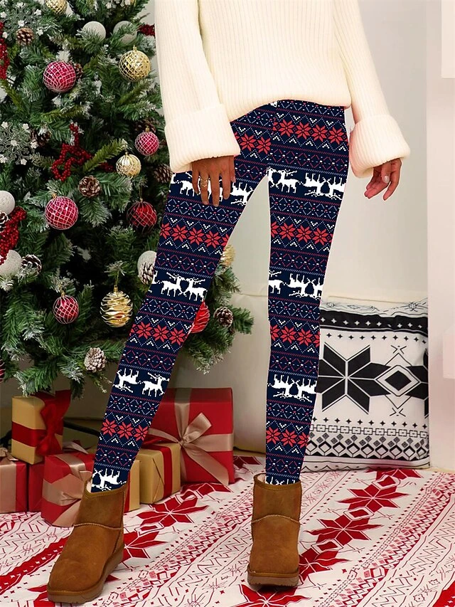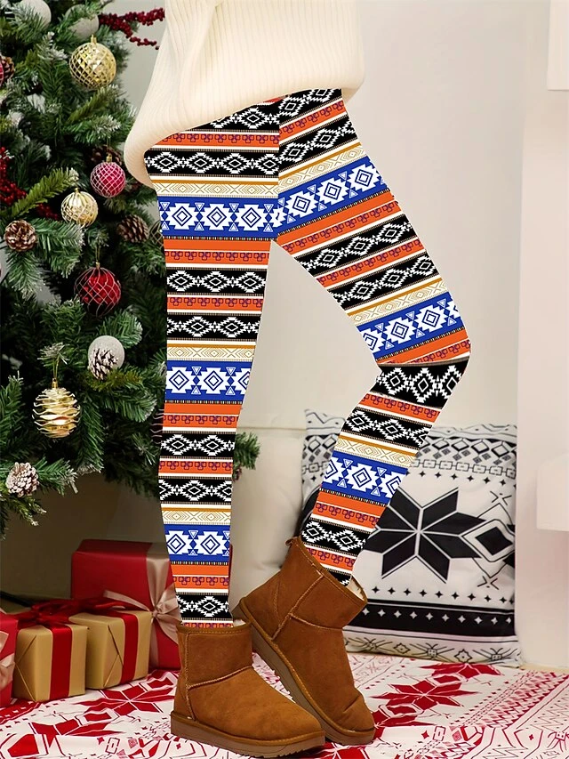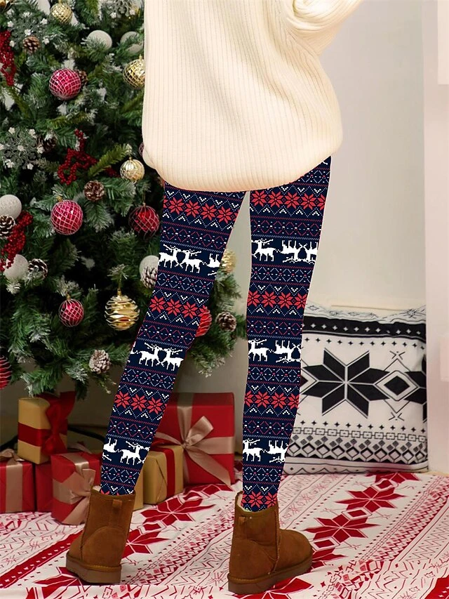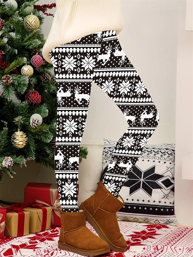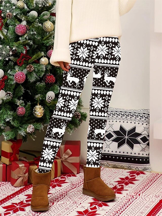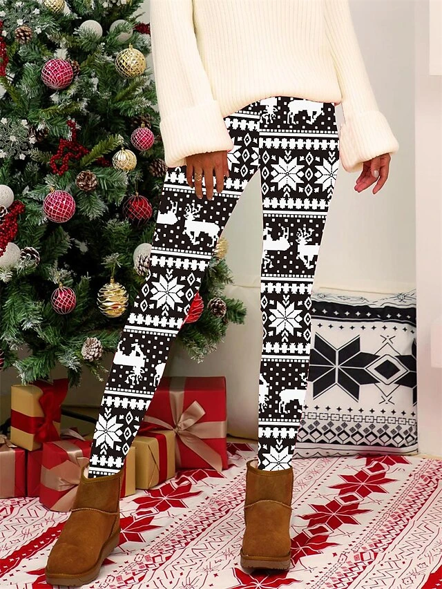 Women’s Christmas Leggings High Waist Full Length High Cut Print Micro-elastic Active Fashion Daily Black White S M Fall Winter