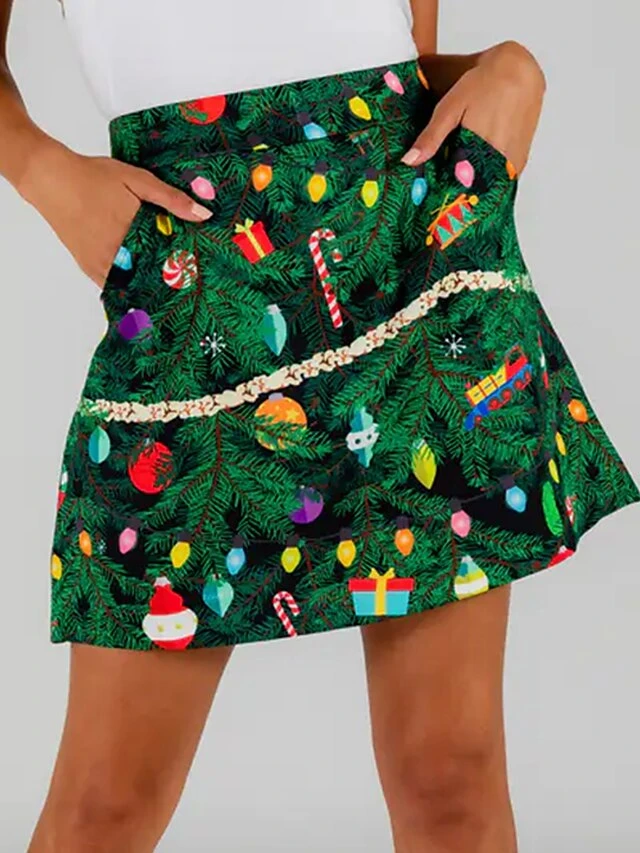 Women’s Christmas Skirts Mini Polyester Red Green Skirts All Seasons Fashion Party Christmas M L XL