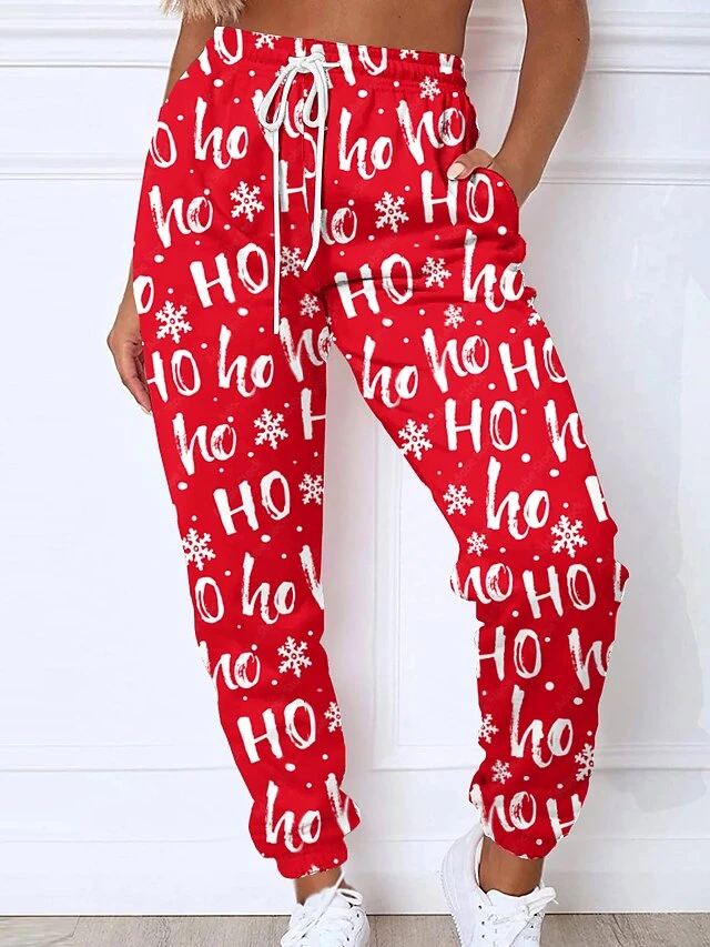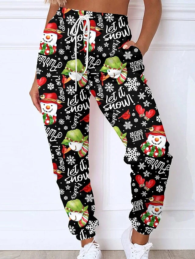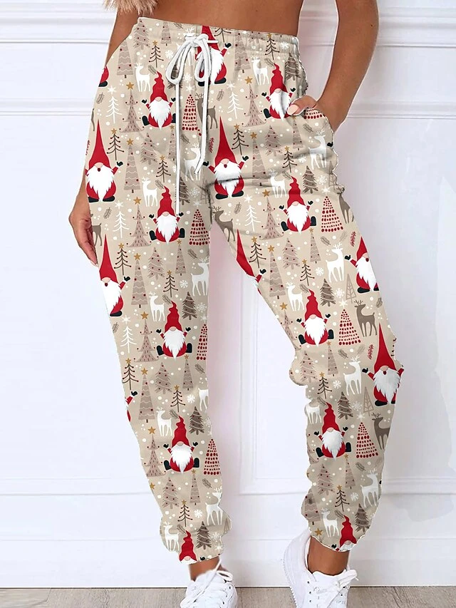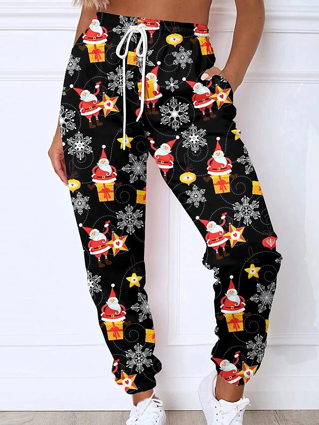 Women’s Christmas Sweatpants Joggers Santa Gift Print Full Length Pocket Daily Xmas Wear Green Black Grey S 3XL Fall Winter