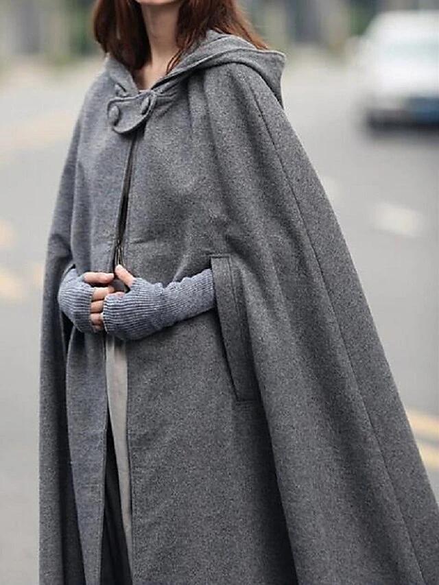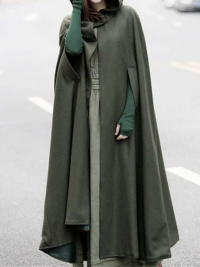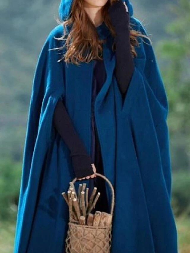 Women’s Cloak / Capes Christmas Long Overcoat Winter Pea Coat Windproof Warm Trench Coat Stylish Classic Casual Xmas Jacket 3/4 Length Sleeve Oversize Black Red Blue
