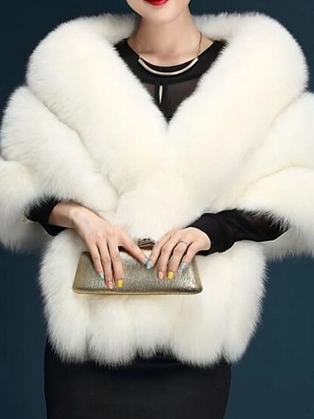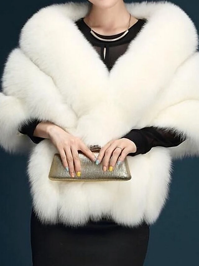 Women’s Cloak / Capes Winter Faux Fur Leather Coat Fall Wedding Party Jacket Christmas Street Windproof Warm Plush Jacket Sleeveless Black White Pink