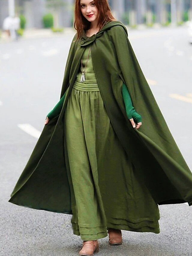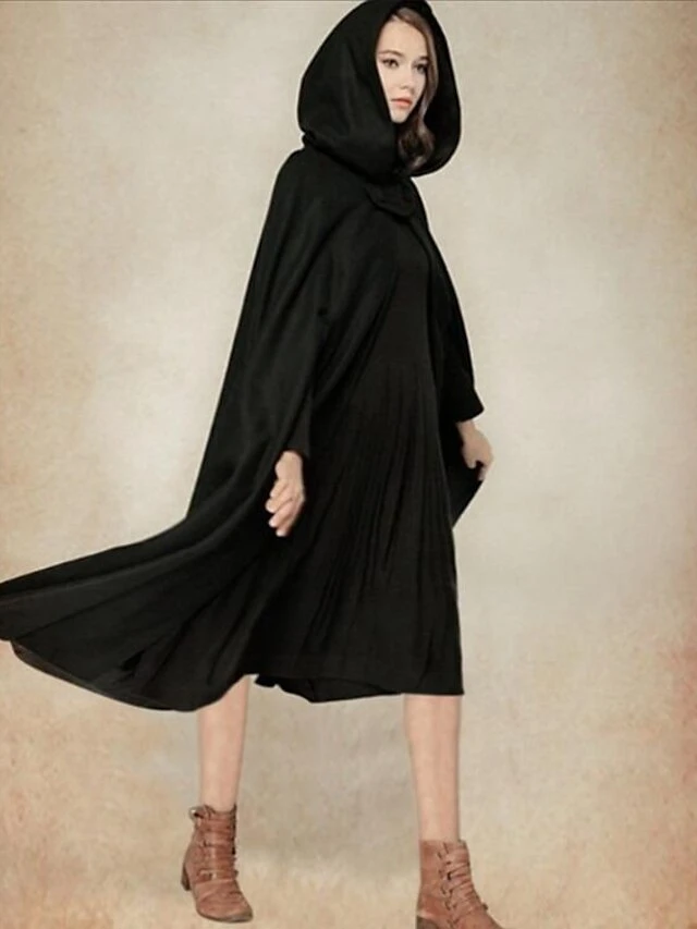 Women’s Coat Cloak / Capes Christmas Long Coat Winter Coat Single Breasted One-Button Overcoat Hooded Coat Sleeveless Black Blue Gray Army Green Red Halloween Basic Essential Causal Fall Loose