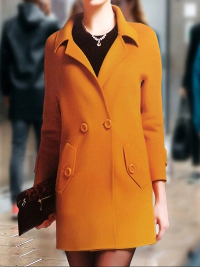 Women’s Coat Outdoor Christmas Street Xmas Fall Winter Long Coat Regular Fit Windproof Warm Breathable Stylish Contemporary Casual Jacket Long Sleeve Plain With Pockets Yellow Red Blue
