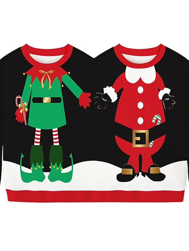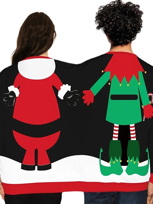Women’s Couple’s Ugly Christmas Sweater Pullover Sweater Jumper Knit Santa Claus Crew Neck Stylish Casual Xmas Holiday Winter Fall Black One-Size