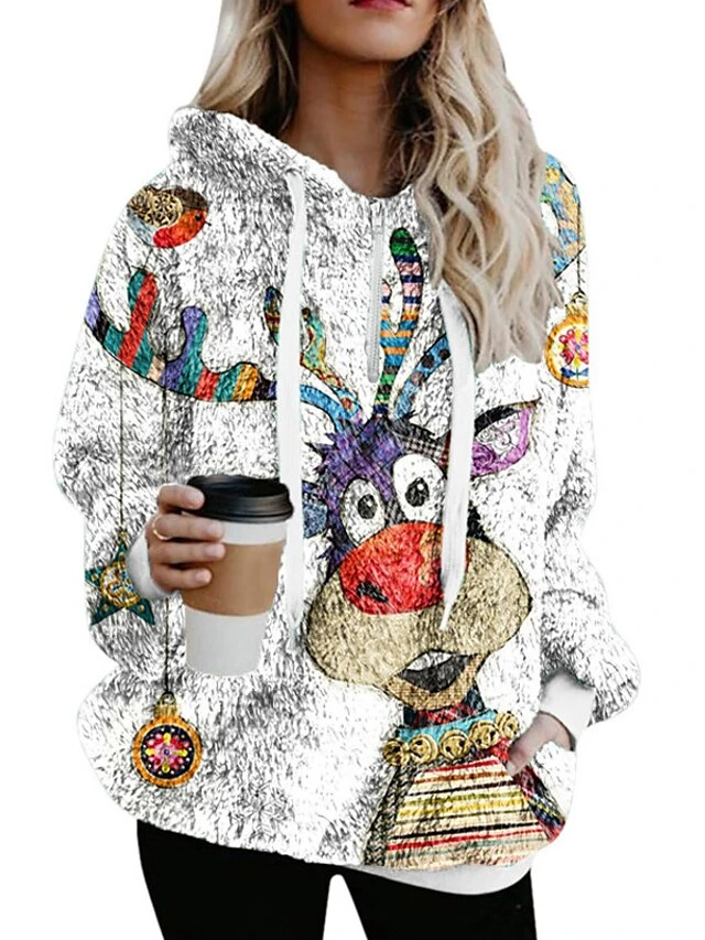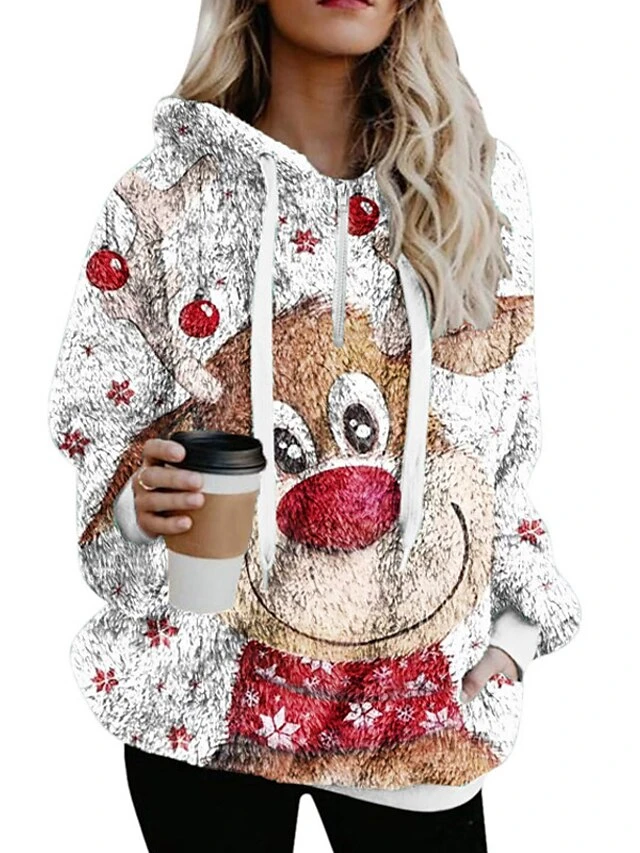 Women’s Fleece Jacket Sherpa Jacket Teddy Coat Warm Breathable Christmas Street Daily Wear Vacation Zipper Pocket Print Pullover Hoodie Plush Casual Daily Comfortable Xmas Animal Regular Fit