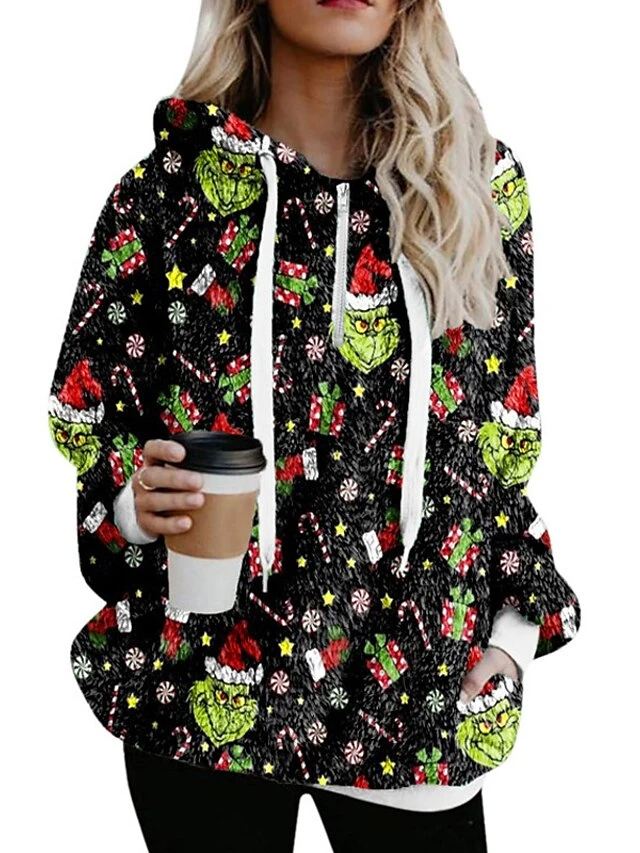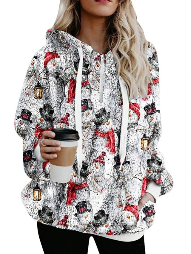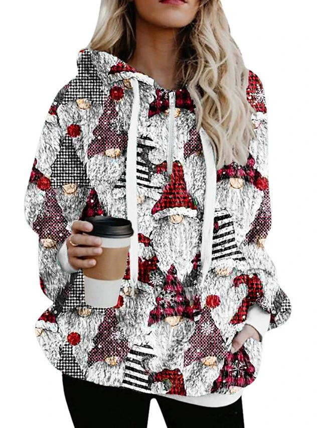 Women’s Fleece Jacket Sherpa Jacket Teddy Coat Warm Breathable Christmas Street Daily Wear Vacation Zipper Pocket Print Pullover Hoodie Plush Casual Daily Comfortable Xmas Santa Claus Regular Fit
