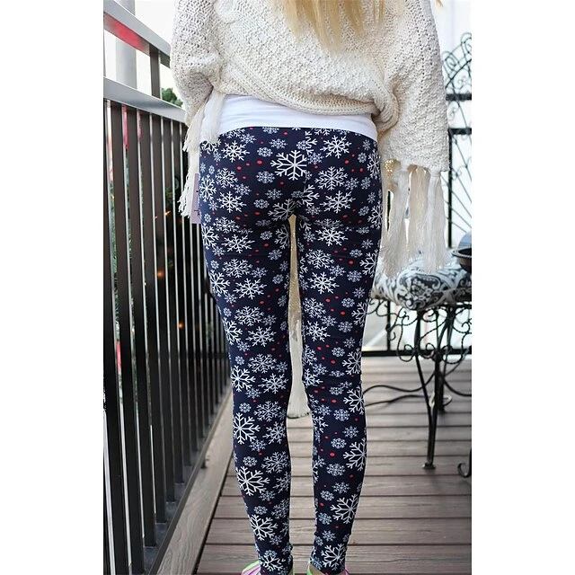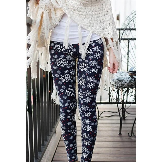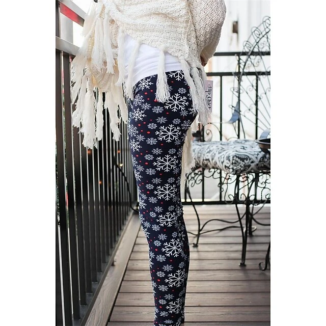 Women’s Fleece Pants Tights Leggings Thermal Underwear Fleece Lined Black White Gray High Waist Xmas Vacation Casual Lounge Christmas Winter Print Stretchy Ankle-Length Thermal Warm Snowflake S M