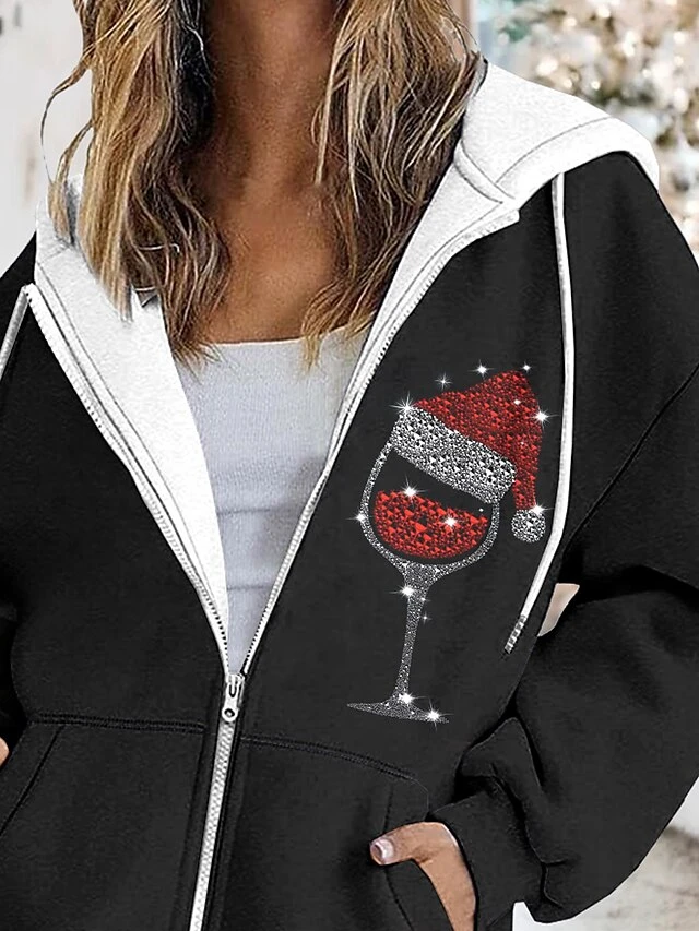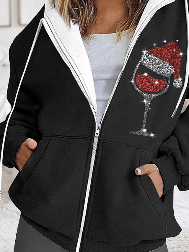 Women’s Hoodied Jacket Fall Sport Hoodie Christmas Drawstring Sweatshirts With Pocket Zip Up Jacket Oversized Outerwear Xmas Long Sleeve Streetwear Coat