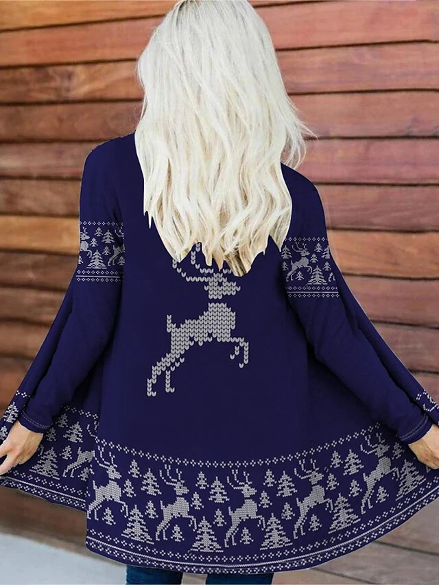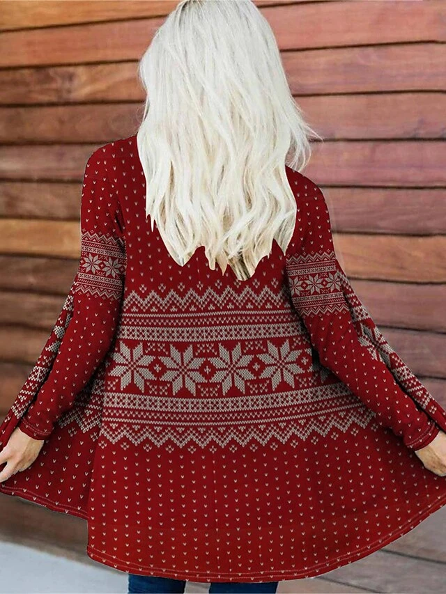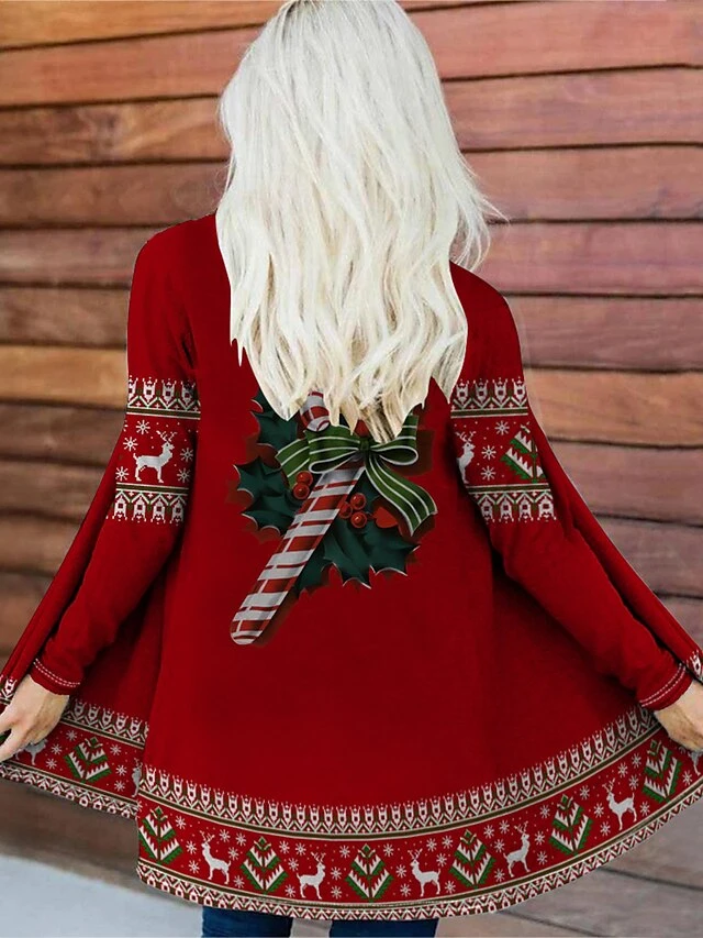 Women’s Jacket Christmas Print Elk Comfortable Fashion Loose Fit Outerwear Long Sleeve Fall Dark Red S
