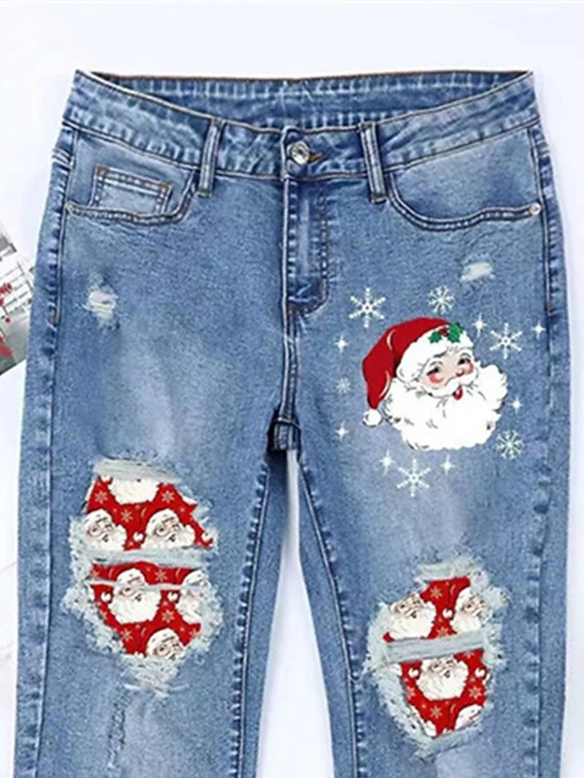 Women’s Jeans Pants Trousers Full Length Fashion Streetwear Christmas Street Xmas Blue S M Fall Winter