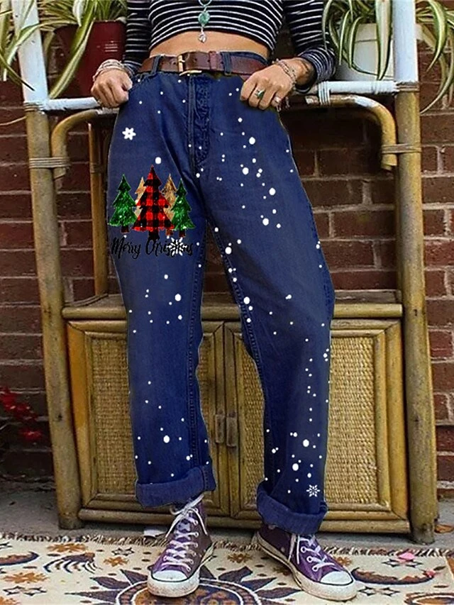 Women’s Jeans Wide Leg Pants Trousers Full Length Vintage Streetwear Christmas Street Xmas Black Grey Dark Blue S M Fall Winter