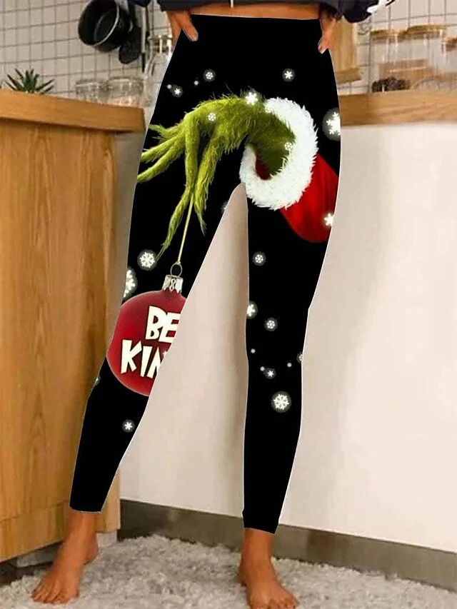 Women’s Christmas Leggings Full Length Active Fashion Christmas Daily White Green S XL Fall & Winter