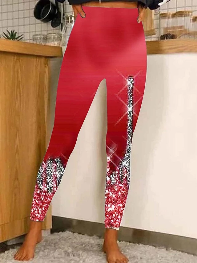 Women’s Leggings Black Blue Black / Red Sparkle Sparkle & Shine Christmas Casual Xmas Leisure Sports Print Stretchy Ankle-Length Tummy Control Patterned S M L XL 2XL
