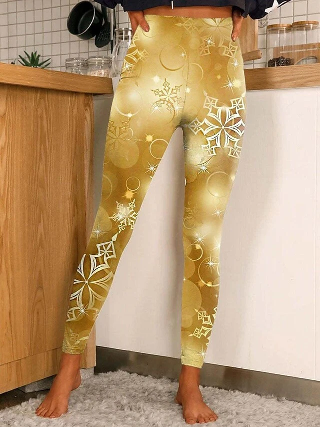 Women’s Leggings Dark Yellow Black Golden Sparkle Sparkle & Shine Christmas Casual Xmas Leisure Sports Print Stretchy Ankle-Length Tummy Control Patterned S M L XL 2XL