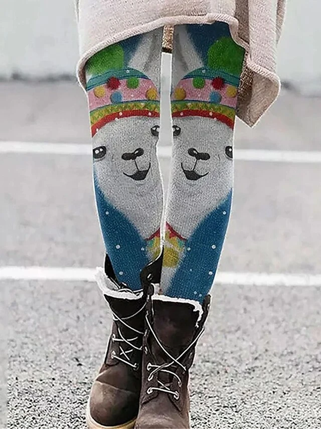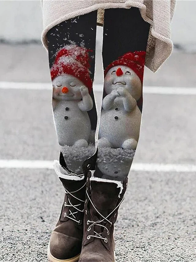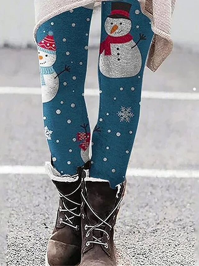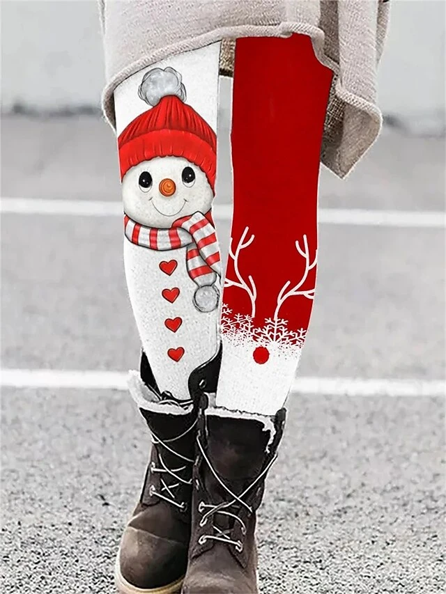 Women’s Christmas Leggings Full Length Active Fashion Christmas Daily White Green S XL Fall & Winter