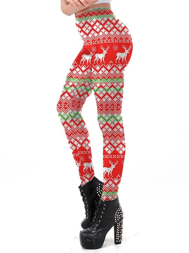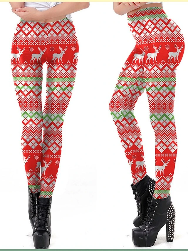 Women’s Leggings Full Length Active Vacation Outdoor Christmas Wine Red S M Fall Winter
