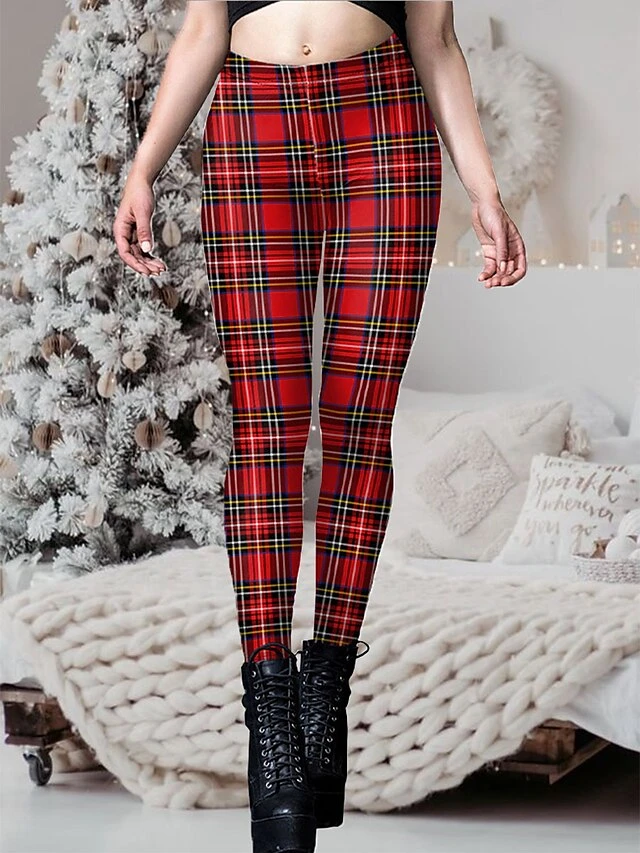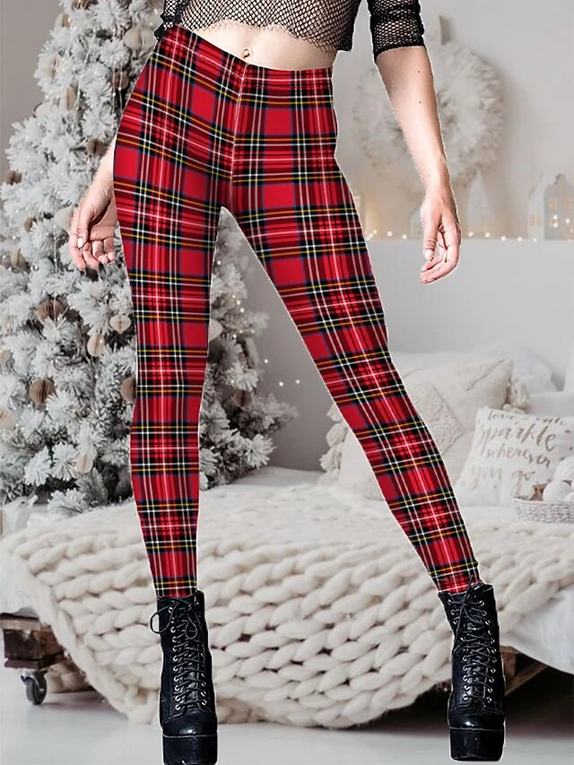 Women’s Leggings Full Length Fashion Streetwear Christmas Street Red S M Fall Winter