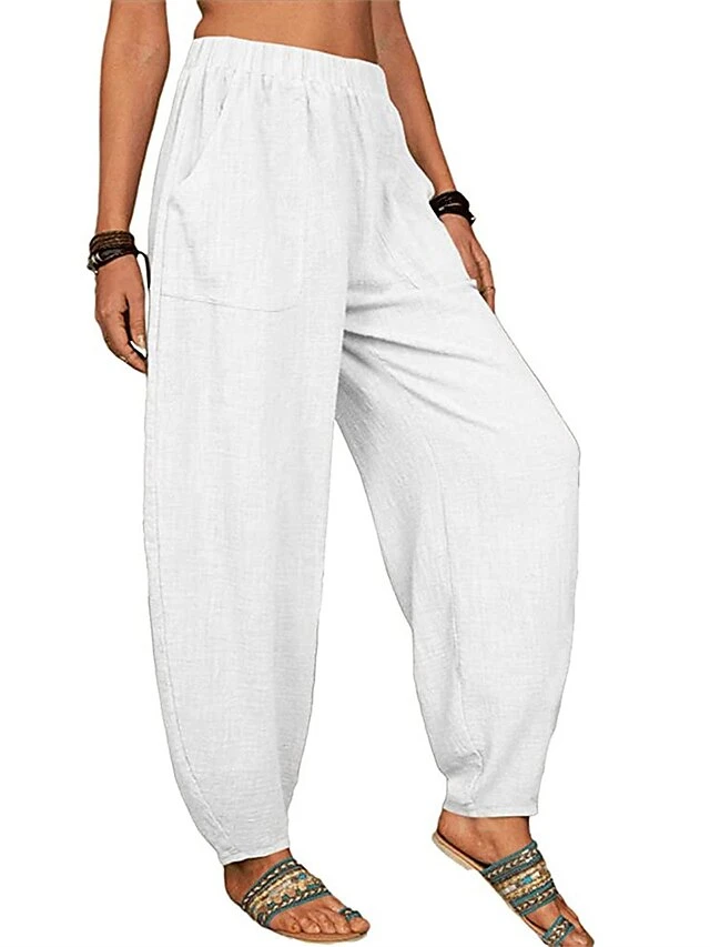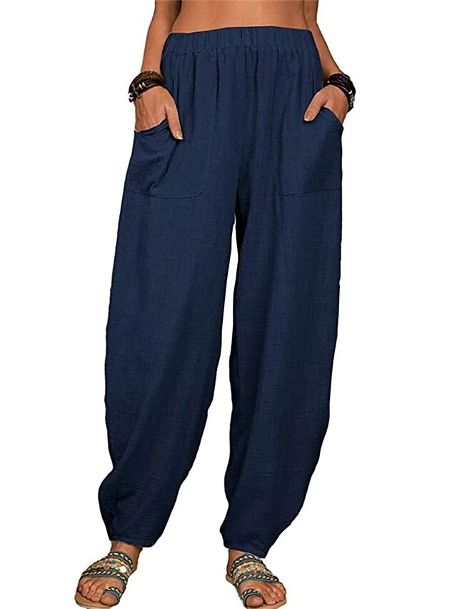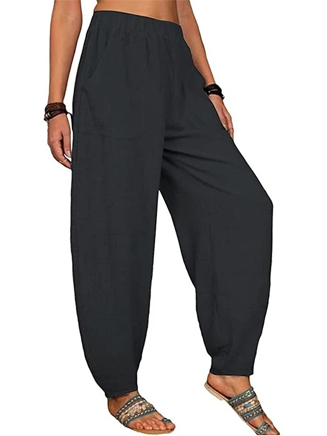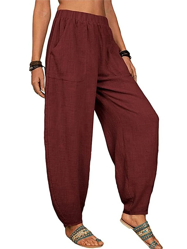 Women’s Linen Pants Pants Trousers Harem Pants Full Length Linen Cotton Blend Pocket High Waist Active Vacation Xmas Home Christmas Wine Black S M Winter Autumn / Fall