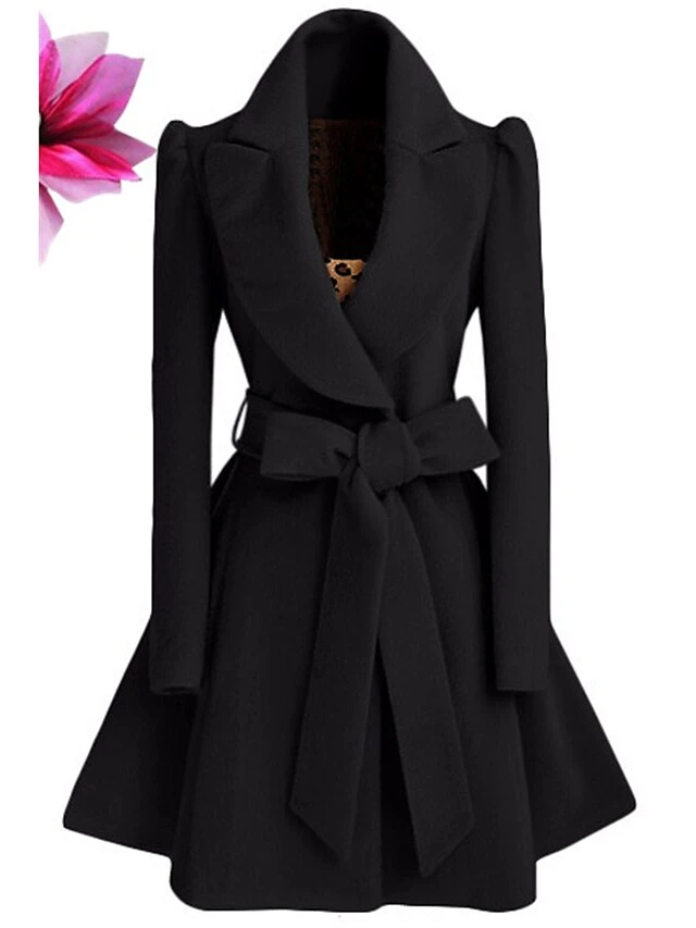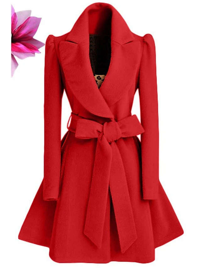 Women’s Overcoat Long Pea Coat Winter Long Coat Christmas Party Dress Coat Fall Windproof Warm Trench Coat With Belt Comtemporary Stylish Trendy Jacket Long Sleeve Black Red Apricot