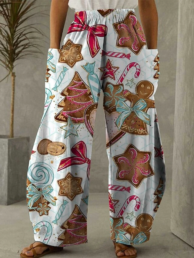 Women’s Pants Trousers Bloomers Full Length Faux Linen Trousers Christmas Christmas Festival Rice White White S M Fall & Winter