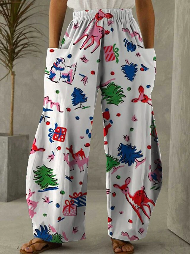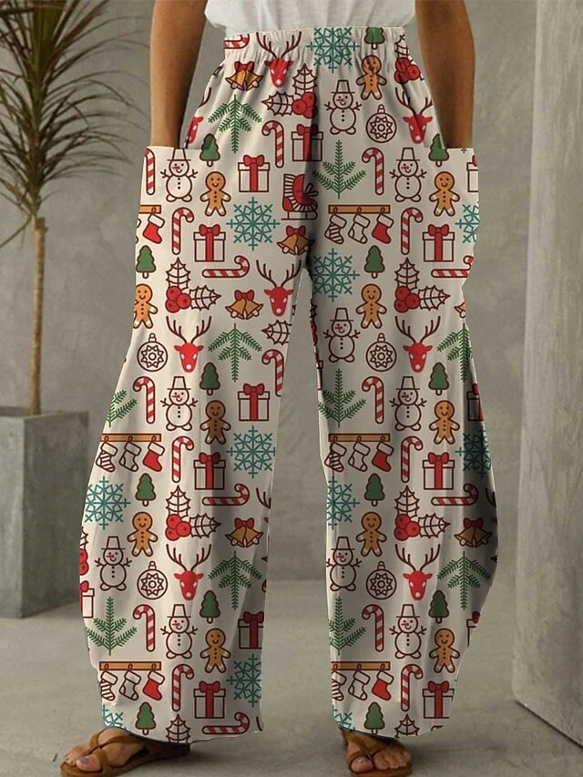 Women’s Pants Trousers Bloomers Full Length Faux Linen Trousers Christmas Xmas Festival Magenta Wine S M Fall & Winter