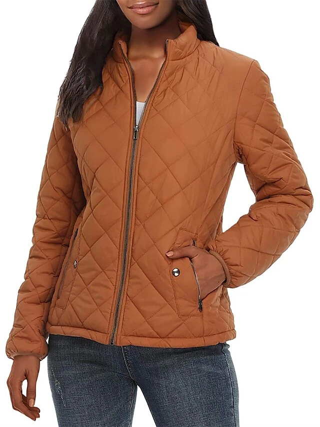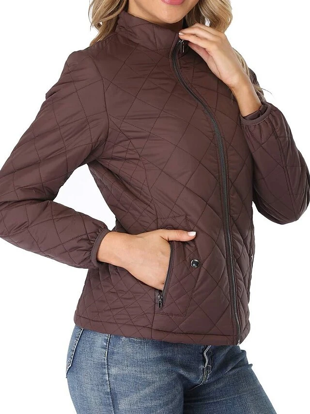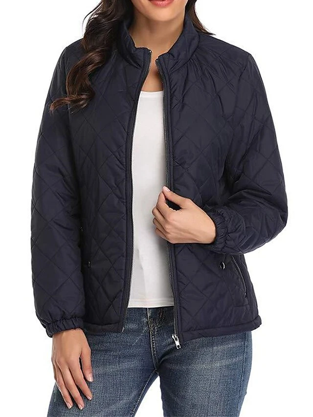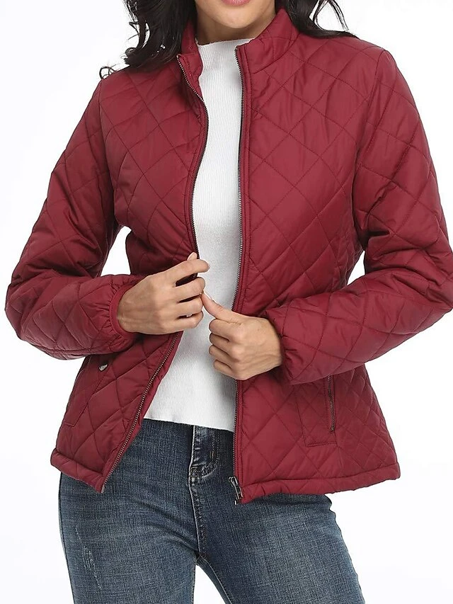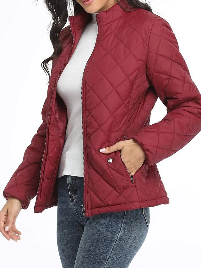 Women’s Parka Outdoor Christmas Street Xmas Fall Winter Regular Coat Stand Collar Regular Fit Thermal Warm Windproof Comtemporary Casual Minimalism Jacket Long Sleeve Solid Color With Pockets Full Zip