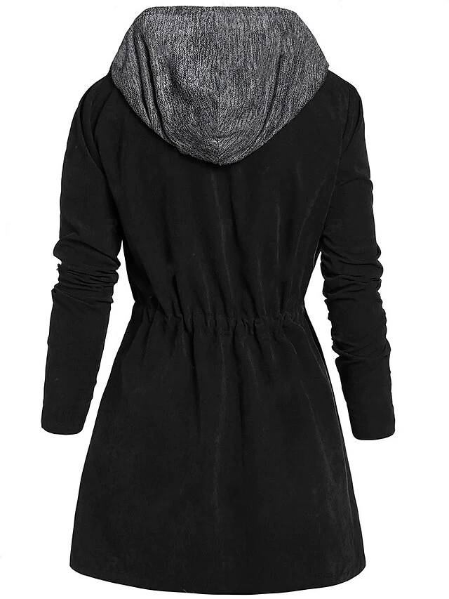 Women’s Plus Size Winter Coat Coat Warm Pocket Solid Color Outdoor Christmas Causal Xmas Long Sleeve Hooded Long Winter Fall Black Wine XL XXL 3XL 4XL 5XL