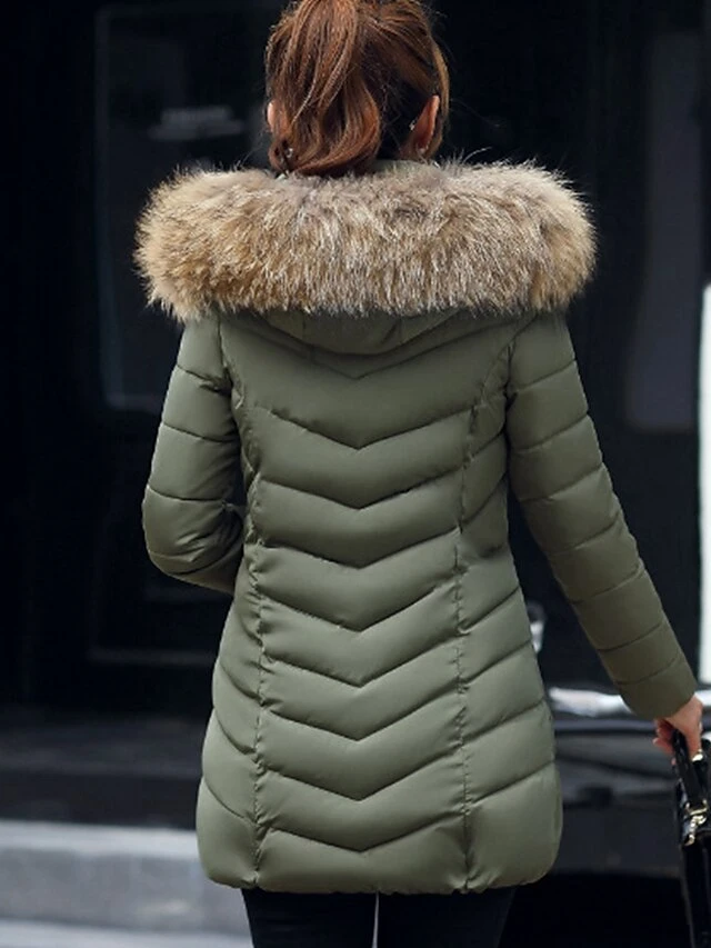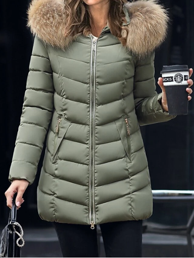 Women’s Puffer Jacket Casual Zipper Daily Wear Going Out Christmas Polyester Coat Winter Fall Black Wine Army Green Zipper Hoodie Regular Fit M L XL XXL 3XL 4XL