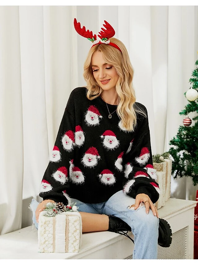 Women’s Pullover Crew Neck Knit Nylon Polyester Knitted Fall Winter Christmas Christmas Long Sleeve Animal Black Yellow Light Green S M L