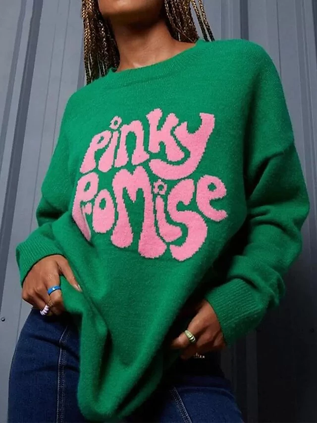 Women’s Pullover Sweater Jumper Crew Neck Chunky Knit Acrylic Polyester Knit Oversized Puff Sleeve Fall Winter Cropped Christmas Date New Year Xmas Sexy Casual Long Sleeve Color Block Letter Red Green
