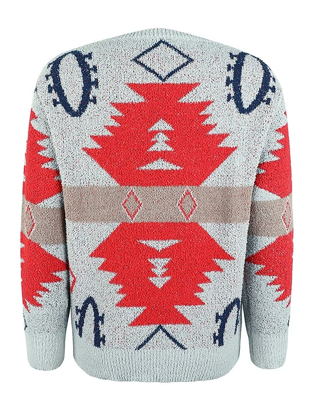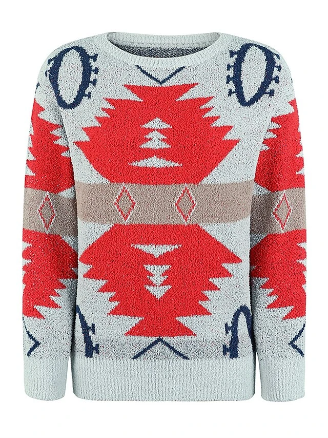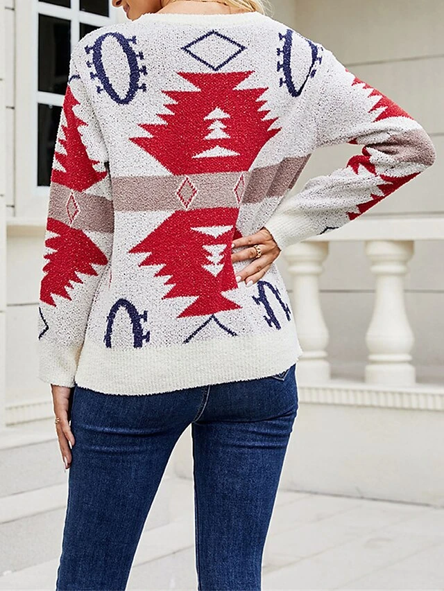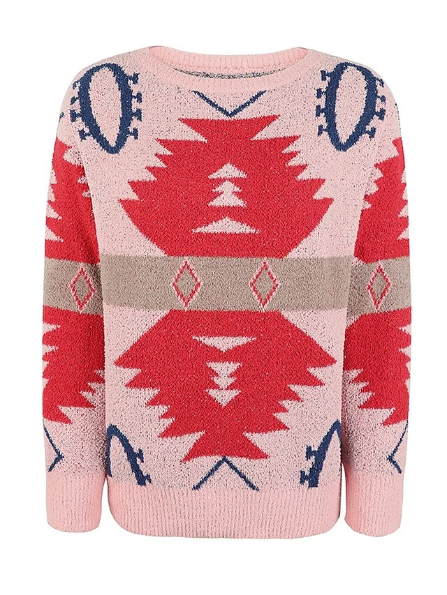 Women’s Pullover Sweater Jumper Crew Neck Ribbed Knit Polyester Oversized Fall Winter Short Christmas Daily Going Out Xmas Stylish Casual Soft Long Sleeve Geometric Pink Apricot Grey S M L