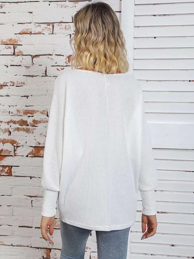 Women’s Pullover Sweater Jumper Crew Neck Ribbed Knit Print Fall Winter Regular Christmas Soft Long Sleeve Animal Elk White Green S M L