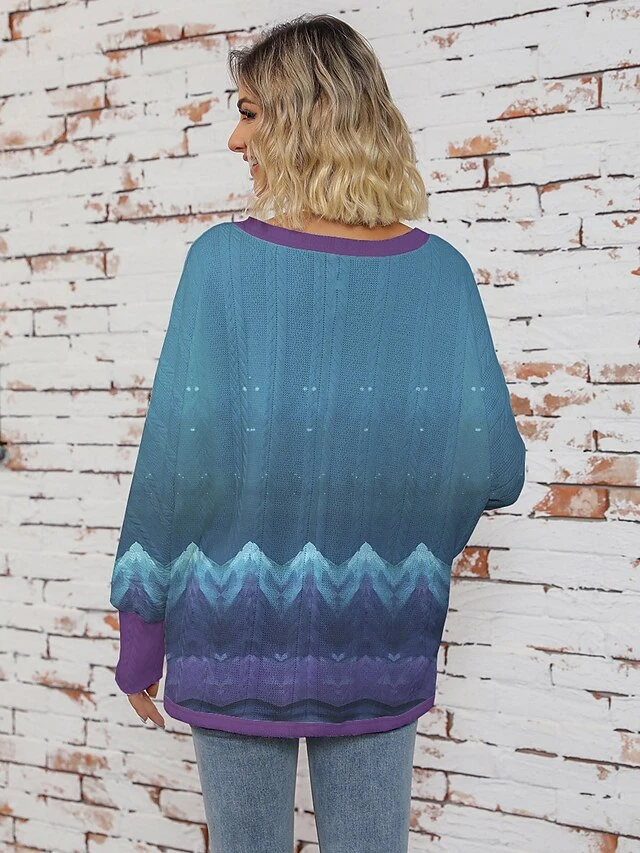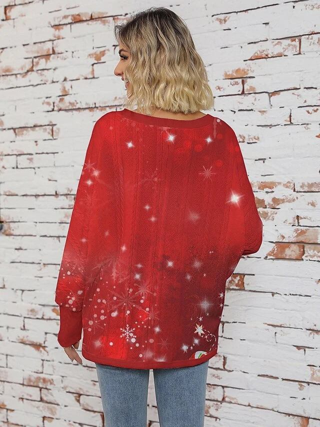 Women’s Pullover Sweater Jumper V Neck Ribbed Knit Print Fall Winter Regular Christmas Stylish Soft Long Sleeve Santa Claus Xmas Tree Red Purple S M L