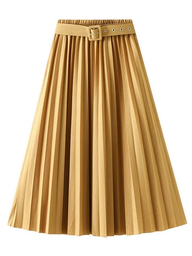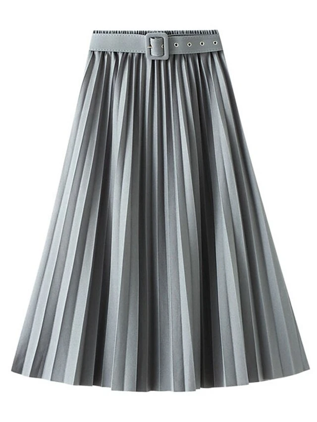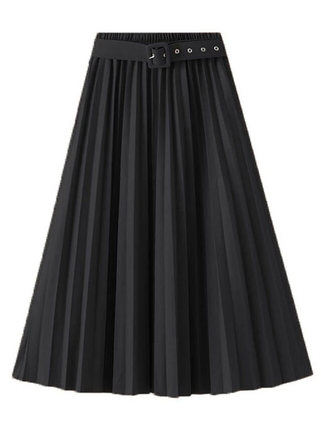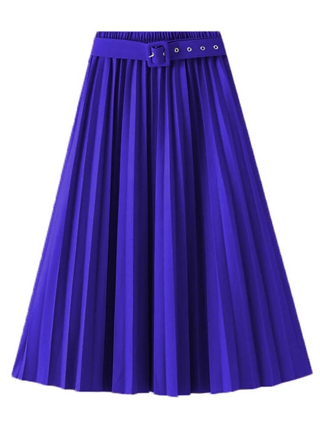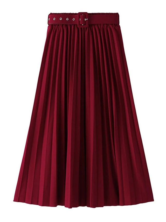 Women’s Skirt A Line Midi Pleated Royal Blue And Wine Black Pink Skirts Fall & Winter Belt Included Fashion Elegant Christmas Daily Xmas M L XL
