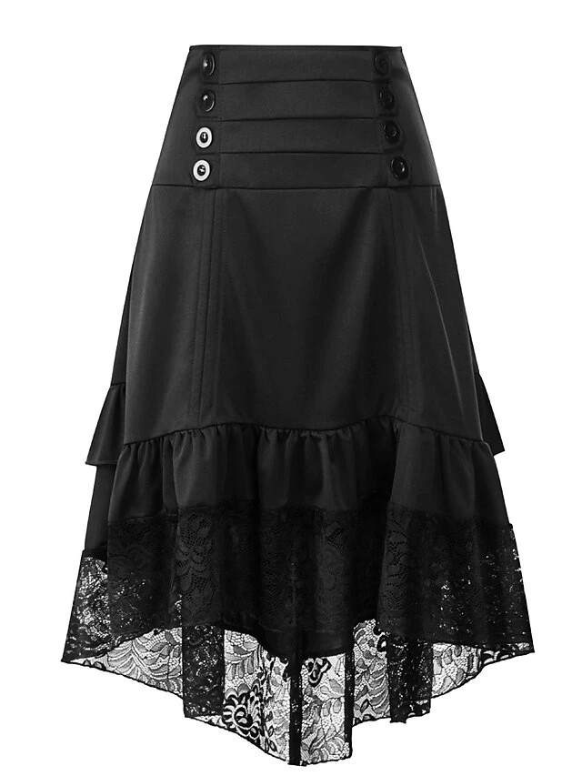Women’s Skirt Asymmetrical Polyester Lace Over Charmeuse Black Red Navy Blue Skirts Winter Ruffle Drawstring Side Button High Waist Steampunk® Retro Gothic Carnival Costumes Ladies Christmas