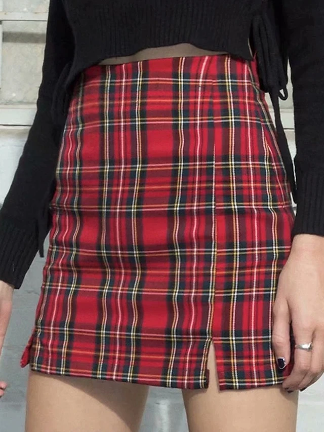 Women’s Skirt Bodycon Christmas Plaid Skirt Mini Red Skirts Fall & Winter Split Ends Print Fashion Sexy Street Daily S M