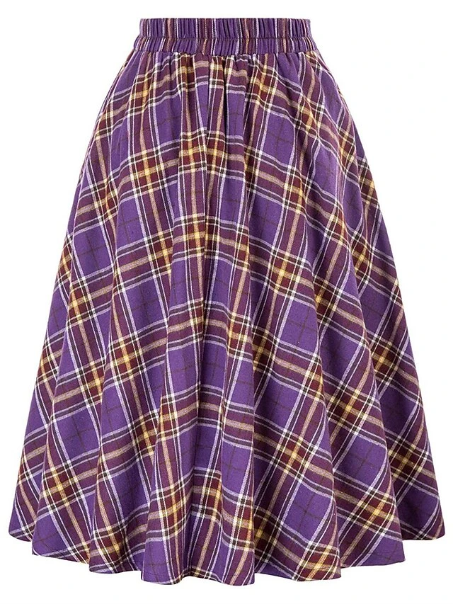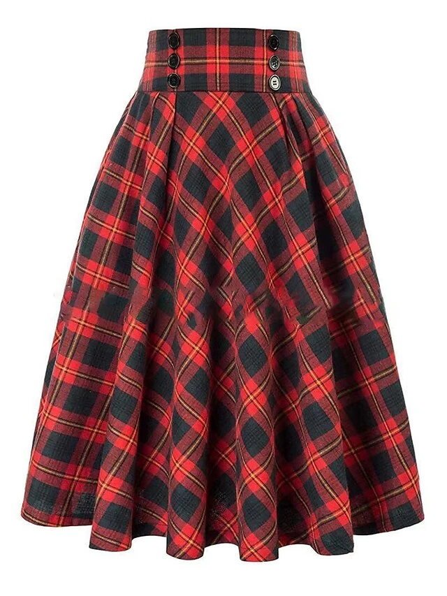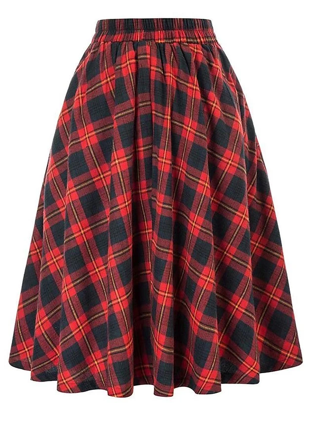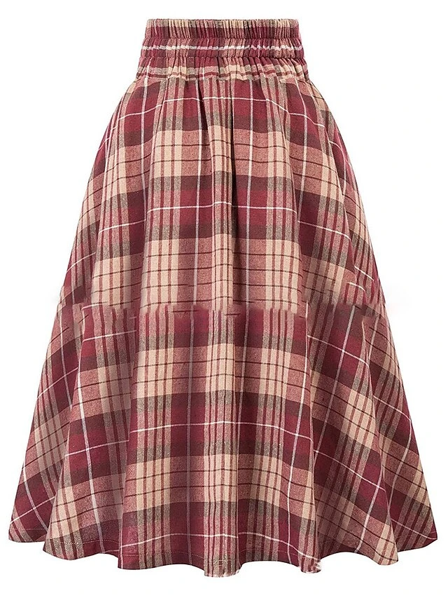 Women’s Skirt Christmas Plaid Skirt Midi Cotton Blend Camel Black Wine Red Skirts Fall & Winter Ruched Print High Waist Fashion Casual Xmas Street S M L