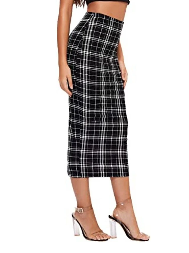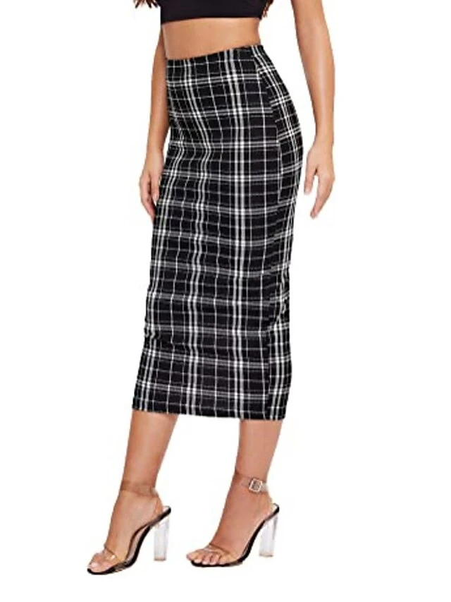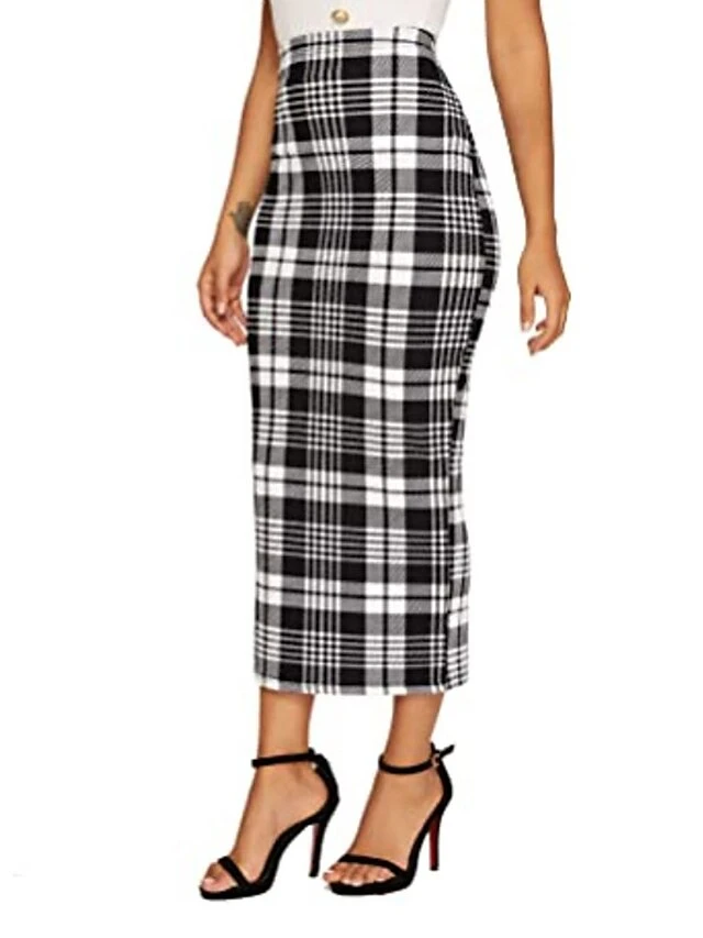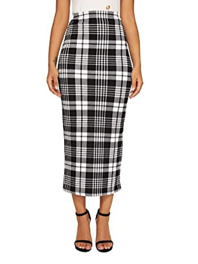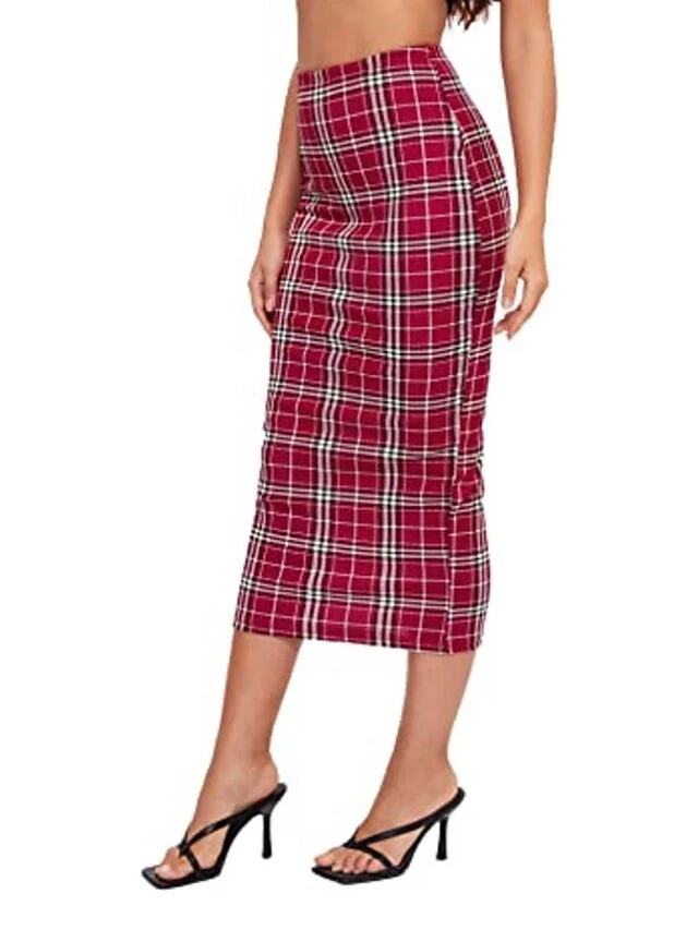 Women’s Skirt Scottish Tartans Plaid Skirt Midi Cotton Blend Black White Red Skirts Fall & Winter Print High Waist Fashion Sexy Christmas Street Xmas S M L