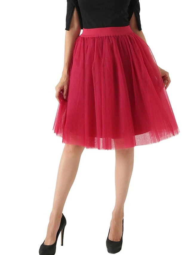 Women’s Skirt Swing Tutu Knee-length Organza Black White Pink Wine Skirts Summer Pleated Layered Tulle Lined Active Streetwear Carnival Costumes Ladies Christmas Holiday M L XL