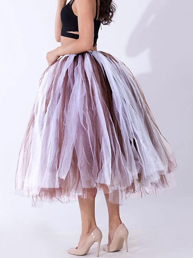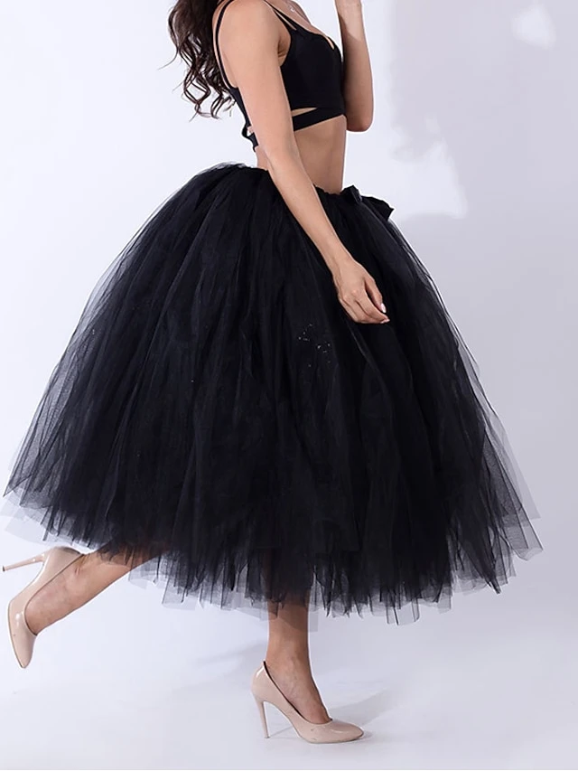 Women’s Skirt Tulle Midi Black White Red Purple Skirts Summer Layered Tulle Lined Basic Party Christmas One-Size