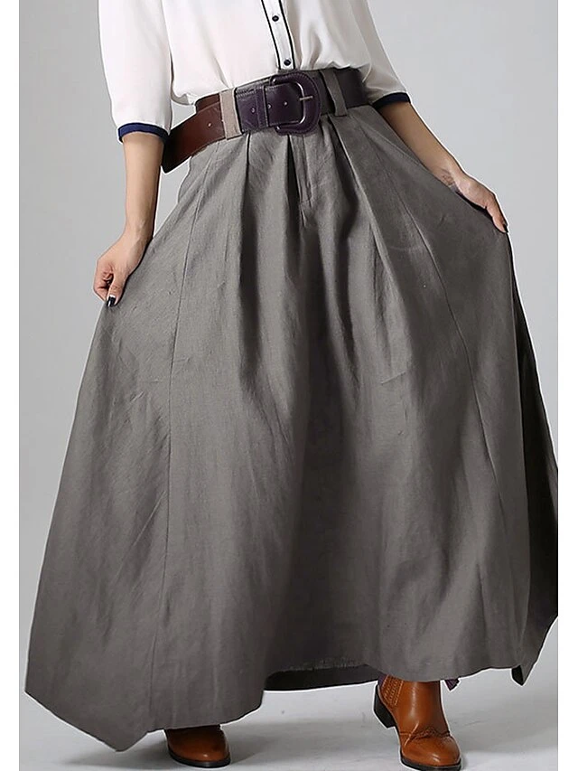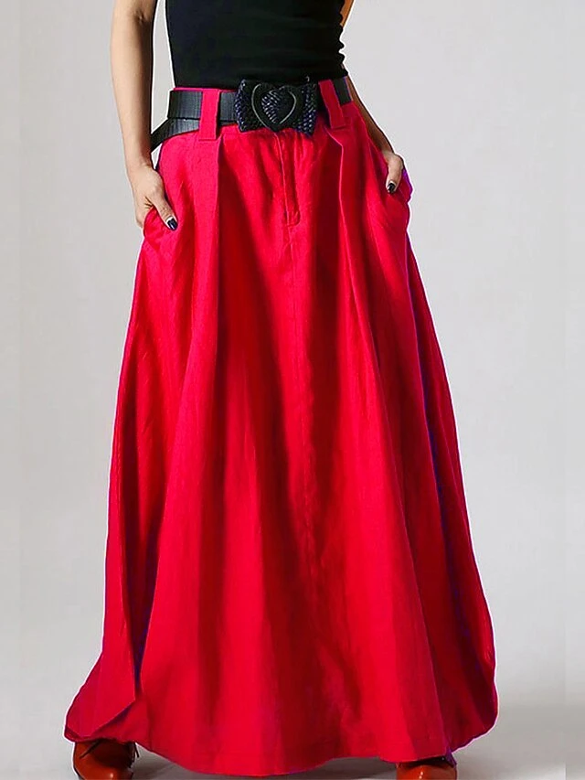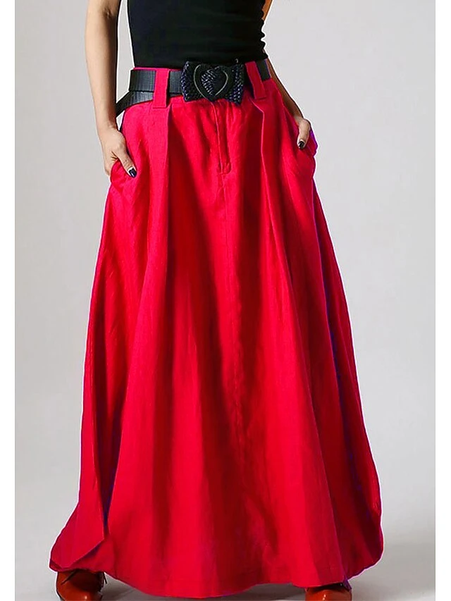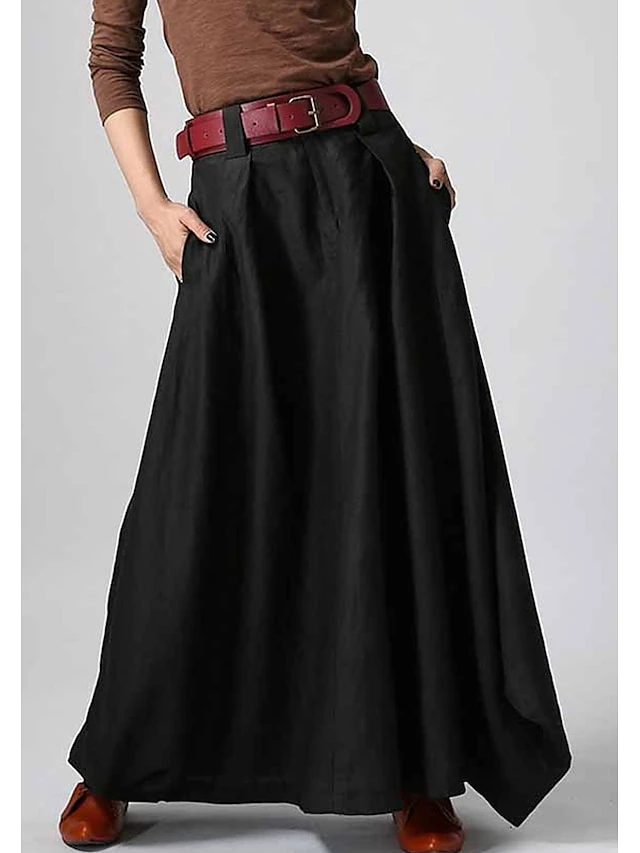 Women’s Skirt Work Skirts Long Skirt Maxi Cotton Black Yellow Red Gray Skirts Fall & Winter Pocket Belt Not Included Without Lining Christmas Daily S M L